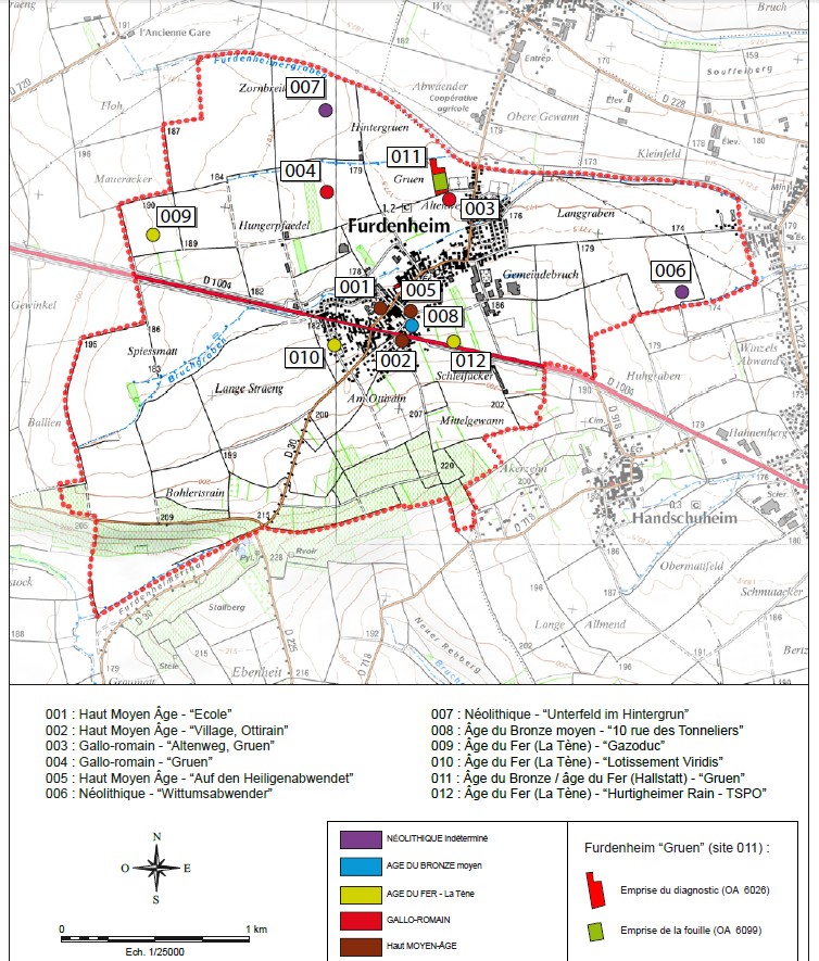 Hallstatt C-D1« , le Pôle d’Archéologie Interdépartemental Rhénan a cartographié l’ensemble des fouilles effectuées sur le ban communal.